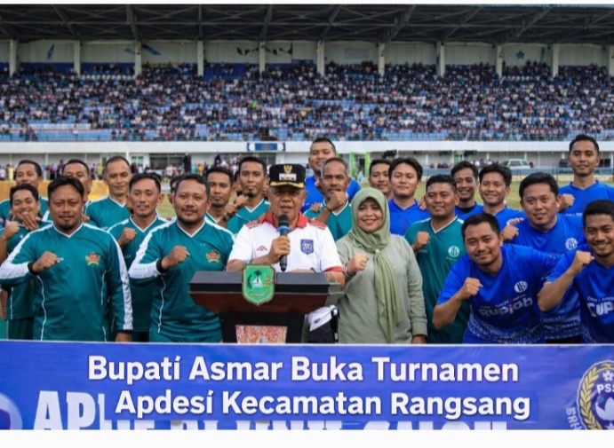 MERANTI – Bupati Kabupaten Kepulauan Meranti, AKBP (Purn) H. Asmar, membuka turnamen sepak bola Asosiasi Pemerintah Desa Seluruh Indonesia (Apdesi) Cup III Kecamatan Rangsang, bertempat di Stadion Selendang Pelangi Kecamatan Rangsang, Minggu (21/12/2025).