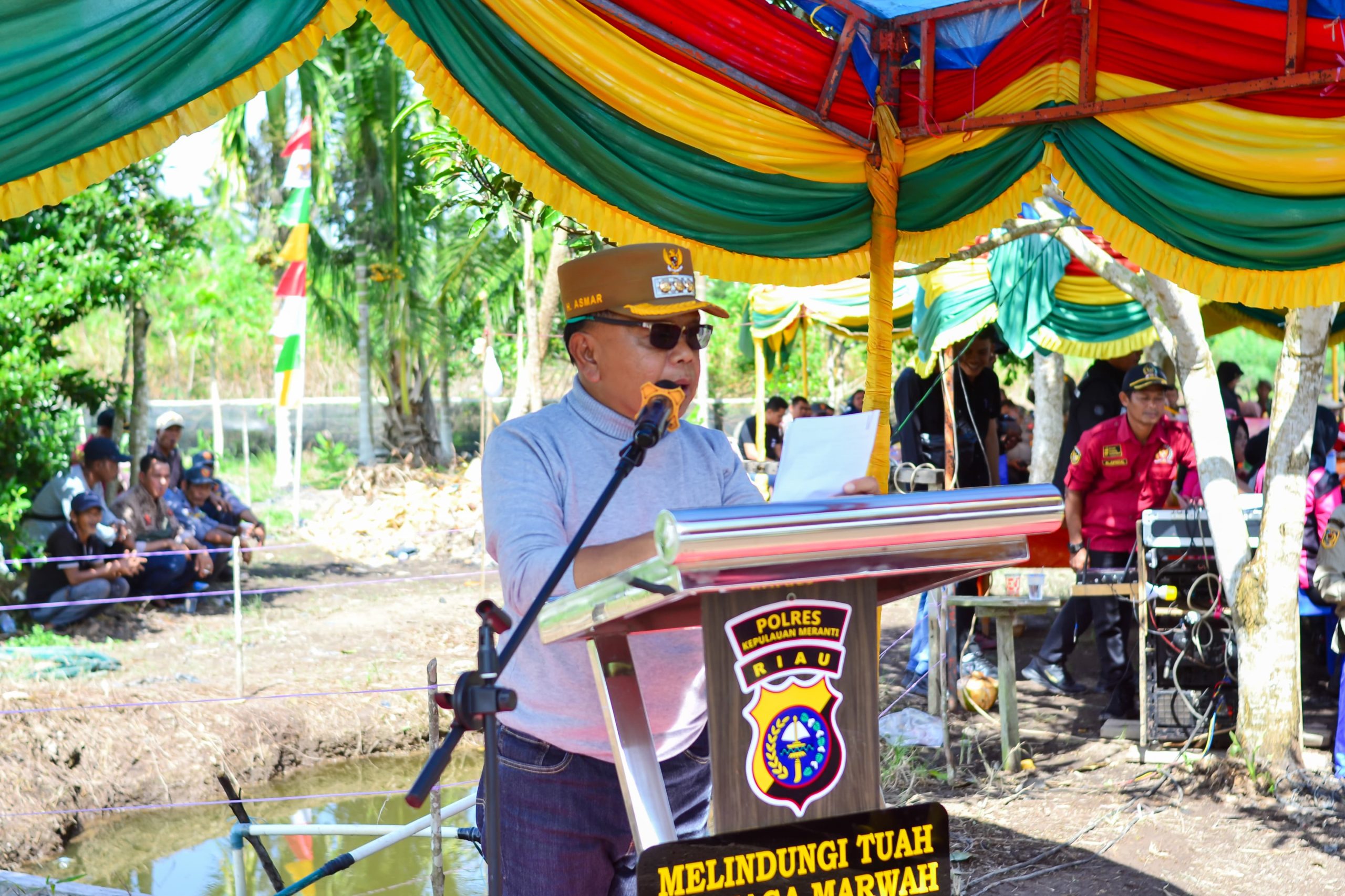Camat Rangsang dalam perayaannya menyampaikan penghargaan kepada Pemerintah Desa Teluk Samak yang telah mengalokasikan 20 persen Dana Desa melalui BUMDes untuk mendukung program ketahanan pangan.