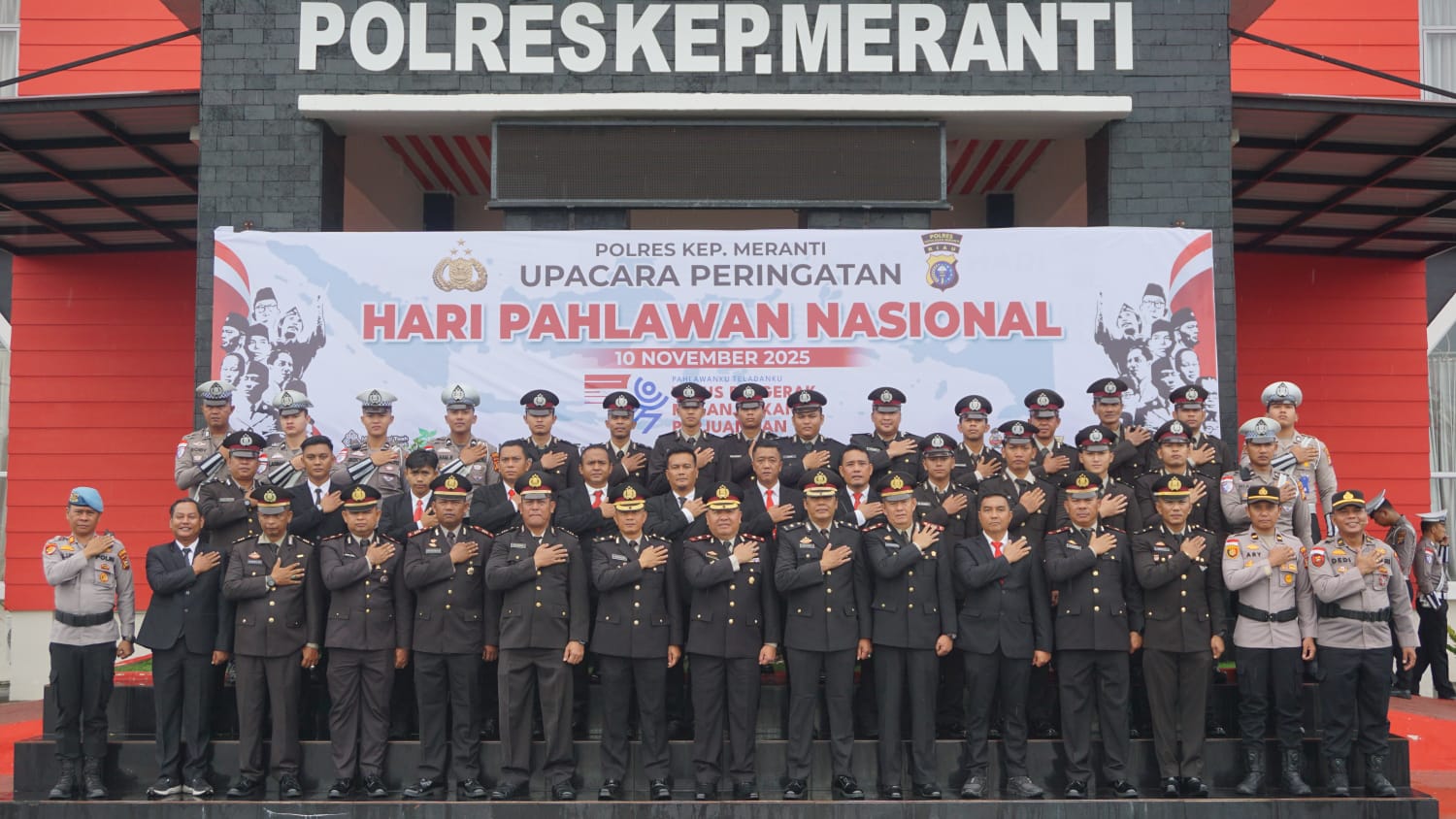 Meranti – Sebagai bentuk penghormatan dan penghargaan terhadap jasa para pahlawan bangsa, Polres Kepulauan Meranti, Polda Riau, melaksanakan upacara peringatan Hari Pahlawan Nasional Tahun 2025 di halaman Mako Polres, Jalan Lintas Gogok, Desa Gogok Darussalam, Senin (10/11/2025) pagi.